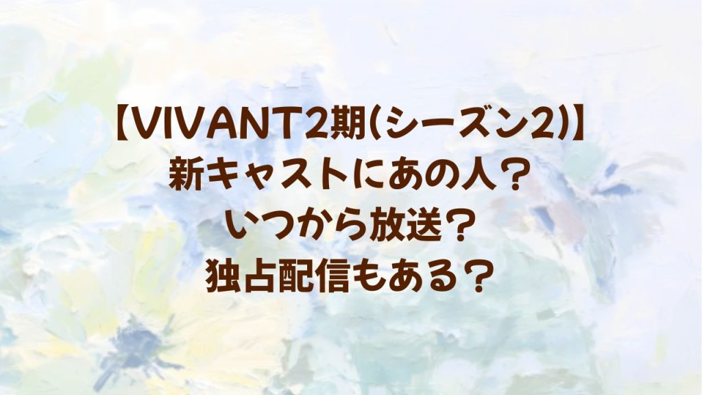 VIVANT2期の新キャストにあの人?いつから放送?独占配信もある?