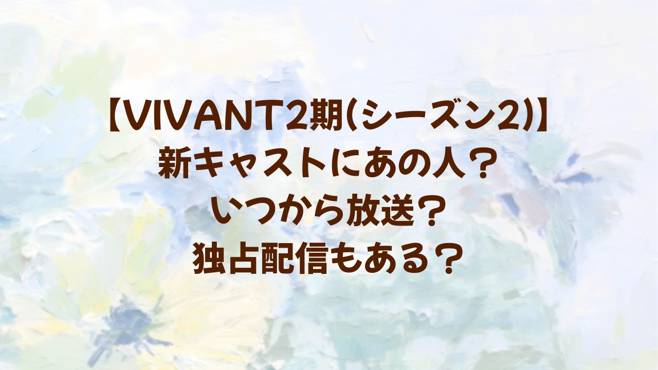 VIVANT1期と同じ7月に2期がスタートとのことで、初回放送と近い日にちの予想になっています。